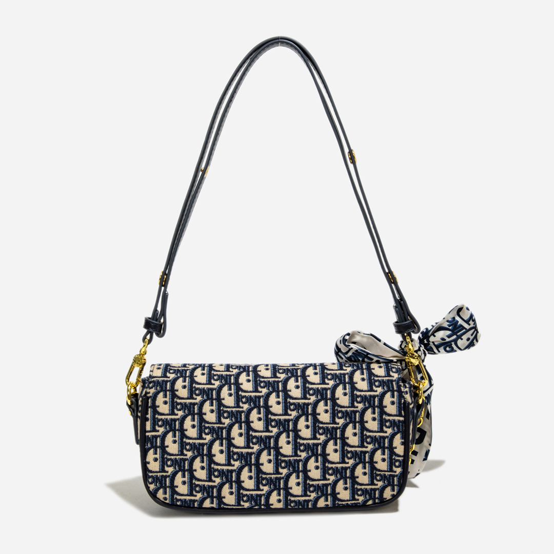 - Chất liệu: da tổng hợp kết hợp vải dệt thêu họa tiết màu xanh navy sang trọng.